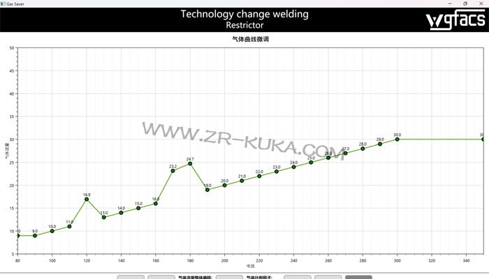 库卡机器人处于待机或工装更换状态时,WGFACS装置会将保护气流量降至极低的保压状态,这个流量既能阻止空气进入管路污染气体,避免下次起弧时因气体纯度不足产生缺陷,又能最大限度减少无效消耗。当机器人接收焊接指令起弧时,装置会根据预设的车架焊接工艺参数表,快速将流量提升至目标值,这个过程的响应速度能精准匹配库卡机器人的起弧时间。焊接过程中,装置会实时监测库卡机器人的焊接电流变化,电流大小直接反映熔池负荷,车架厚壁部位焊接时电流较高,尤其是多层焊的填充层和盖面层,装置会分阶段调整流量,确保每层焊道都得到充分保护;薄壁部位焊接时电流降低,流量也随之减少,避免气体浪费,真正实现电流大则多供、电流小则少供的按需供给模式。收弧阶段,装置会配合库卡机器人的收弧程序,维持一定时间的后拖流量,待熔池完全凝固后再降低流量,防止高温焊道与空气接触产生氧化,这种精细化控制在车架外观焊缝中效果尤为明显,能减少焊道后期打磨工作量。